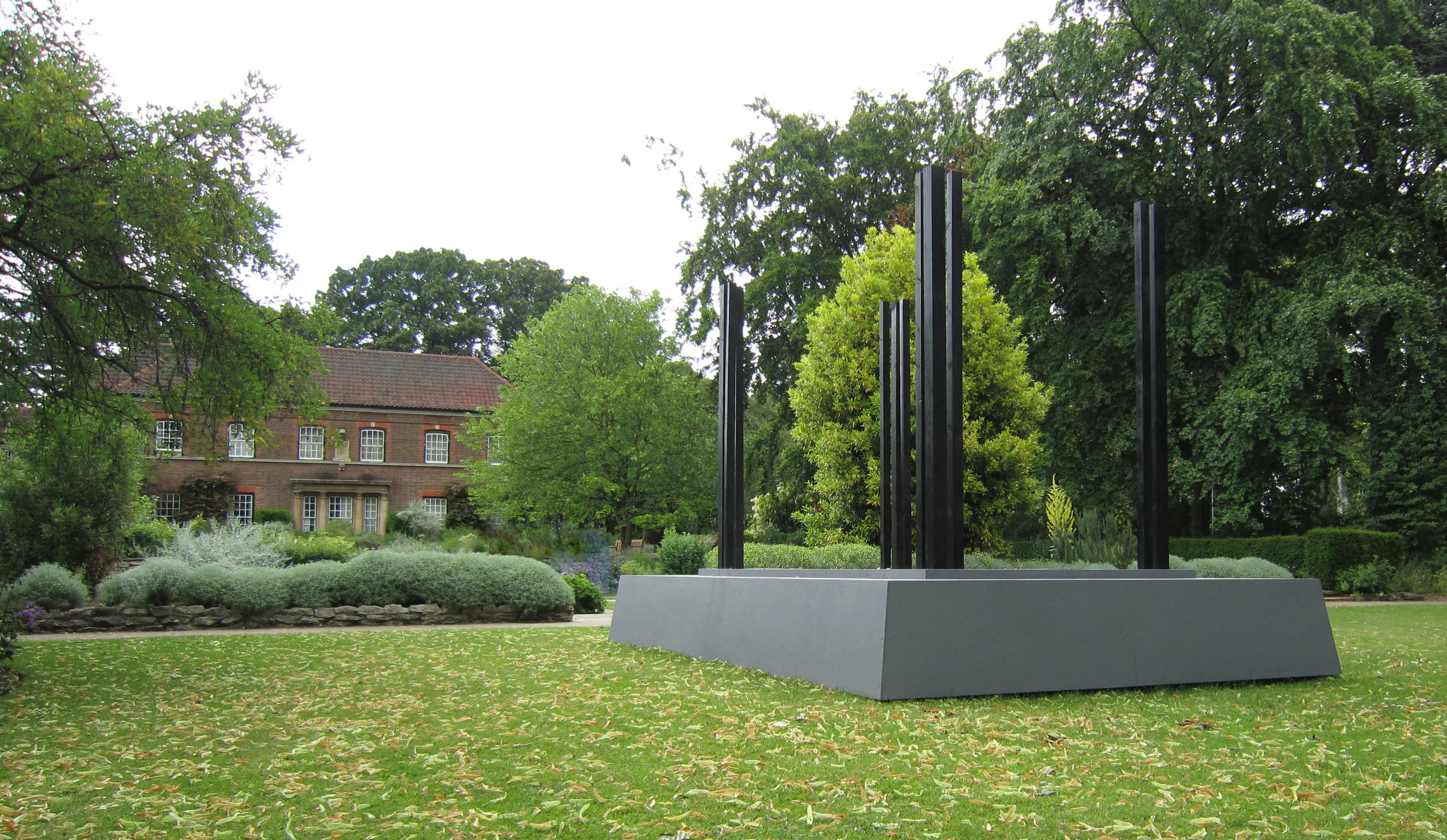 A Decade of Sculpture in the Garden Work by more than sixty sculptors on display, from the USA, Germany, Iceland, Italy, France and the UK, with a number of sculptures by members of the Royal British Society of Sculptors. “The Absent Belfry Shö-Rö is a non-functional sculpture influenced by the bell tower within the Töfuku-Ji Temple in Kyoto. The 12 column platform invites spectators on a journey up the steps to an inner raised platform of the belfry where there is no sound source or protection from the elements, what you find there is their absence. On that journey your mind might wonder about the unanticipated changing dimensions of the stairs, with the increasing step working in tandem with the decreasing foothold as you ascend and thus making you work to enter the absent belfry” Gudrun Nielsen